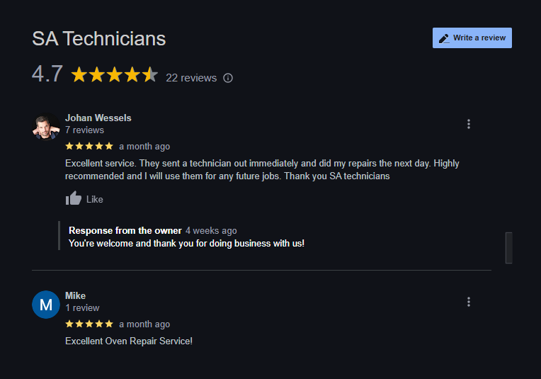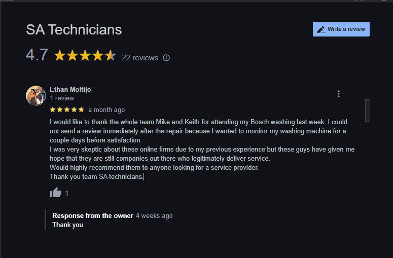 When your washing machine starts acting up, don’t let it disrupt your day! Trust SA Technicians for fast, reliable, and affordable repair services throughout Cape Town. Whether it’s a leaking drum, a noisy spin cycle, or any other issue, our skilled team specializes in fixing washing machines of all makes and models. We’re committed to restoring your appliance’s performance, extending its lifespan, and ensuring your laundry routine is back on track quickly and hassle-free. Let us handle the repairs, so you can focus on the things that matter most.